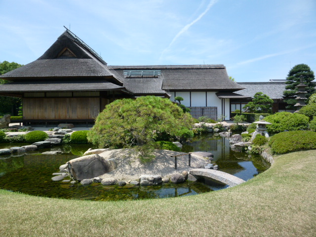 今日は日本三名園のひとつである岡山後楽園を散策しています。そして「延養亭」の前に来ています。延養亭は歴代藩主の居間として使用されていたところ、しかし戦災で焼失その後、1960年復元されました。内部の一般公開はしていないようですが、芝生の散策路から観る延養亭や石橋が架かる池など整備された庭園の姿はとても美しく充分満足できます。楽しんでくださいね。