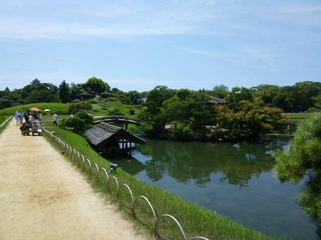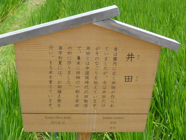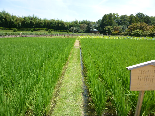 今日は日本三名園のひとつである岡山後楽園を散策しています。園内中央にある沢の池の西向かい「井田」はあります。古くは園内に広い田畑があったようですが今は井田だけが残っている状態になっています。綺麗な正方形の形をしていますね。毎年6月第二日曜日に開催している「お田植え祭」も終了し、2ヶ月が経過し苗も大きく成長し青々しています、もうすぐ淡い琥珀色となり収穫までもう少しですね。その時はまた違った景色を見ることができるでしょう。沢の池のベストスポットの前にありますので合わせてご覧なってくださいね。