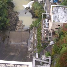 訪れたときは、あいにくの天気で水も濁っていましたが、水量が多いこともあって発電所横の水路のダム穴(朝顔型余水吐)に水が吸い込まれ川に吐き出す様子が見られてよかったです。