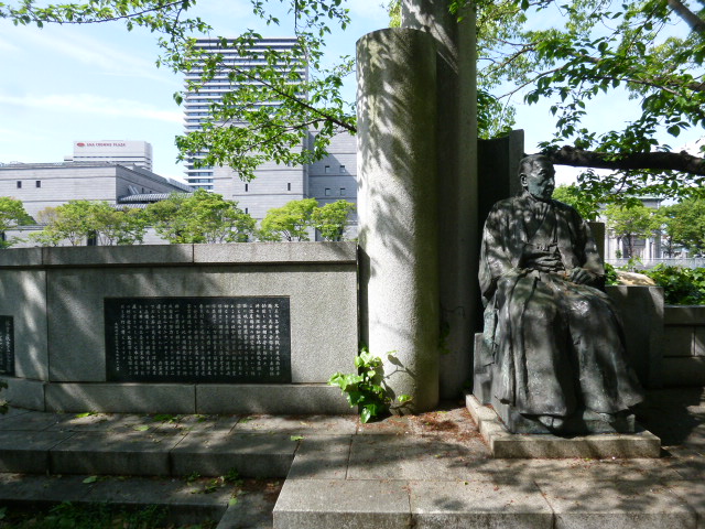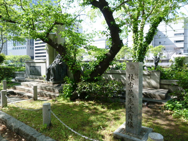 今日は大阪・御堂筋付近を散策しています。ここ淀屋橋南詰の西へちょっと入ったところに「林市蔵像」はあります。林市蔵とは熊本出身で内務官僚、そして全国多くの知事を経て大阪府知事、堂島米穀取引所理事長を務めている人物です。特に大阪での功績は大きく民生委員制度発祥のこの地に記念碑が建てられています。林市蔵は椅子に座り、一点を見つめる力強さは、何か未来を見ているような感じがしました。近くには淀屋屋敷跡の碑もあります。合わせて訪れてくださいね。