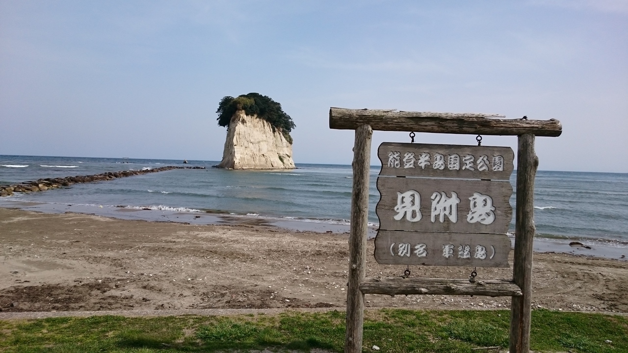 能登半島一周旅の道中に有名な軍艦島に立ち寄りです。見附島と言う名前。一帯は整備された公園で駐車場も広いです。駐車場は無料です。観光バスも多数。見ての通り軍艦に見えます。島が見えるカフェもあり観光スポットになってます。