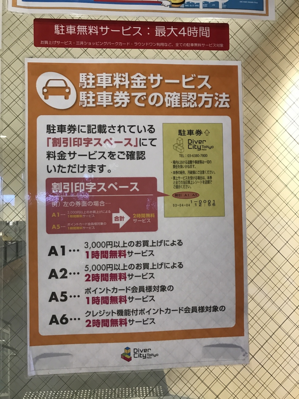 行く予定は全然なかったのですが、お台場に早く着いてしまい、お台場ってどこも11時オープンなので10時オープンのこちらによってみました。ららぽーとのポイントカードを持っていると駐車場が1時間無料になるサービスが嬉しかったです。