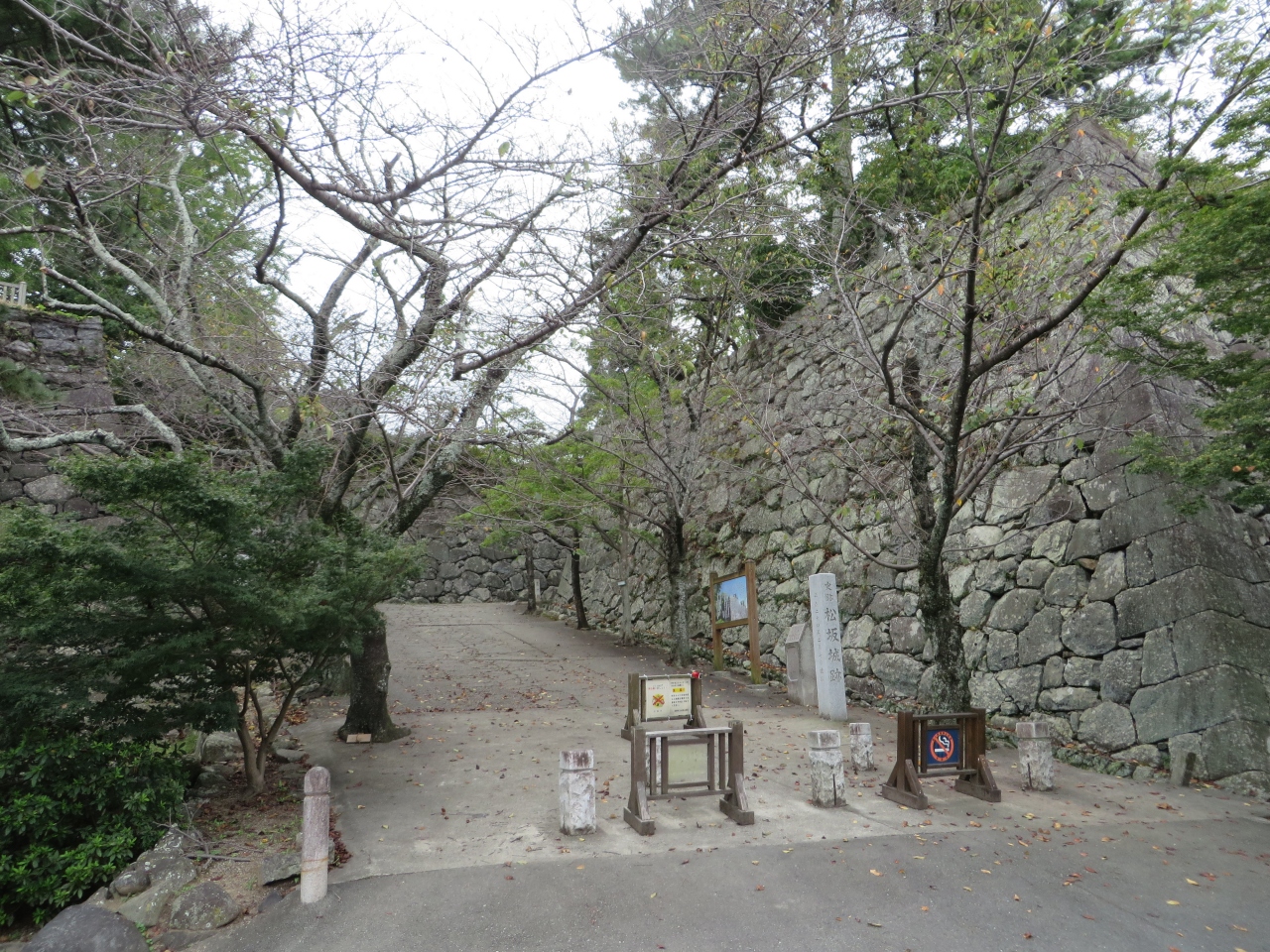 松坂駅から歩いて15分ほどで、松阪城跡に着きます。櫓の類は何も残っていないのですが、高さのある石垣がしっかりと残っていて、松阪城の大きさを思い浮かべることができました。丘を登った先には本丸跡があり、天守の名残の石垣がありました。