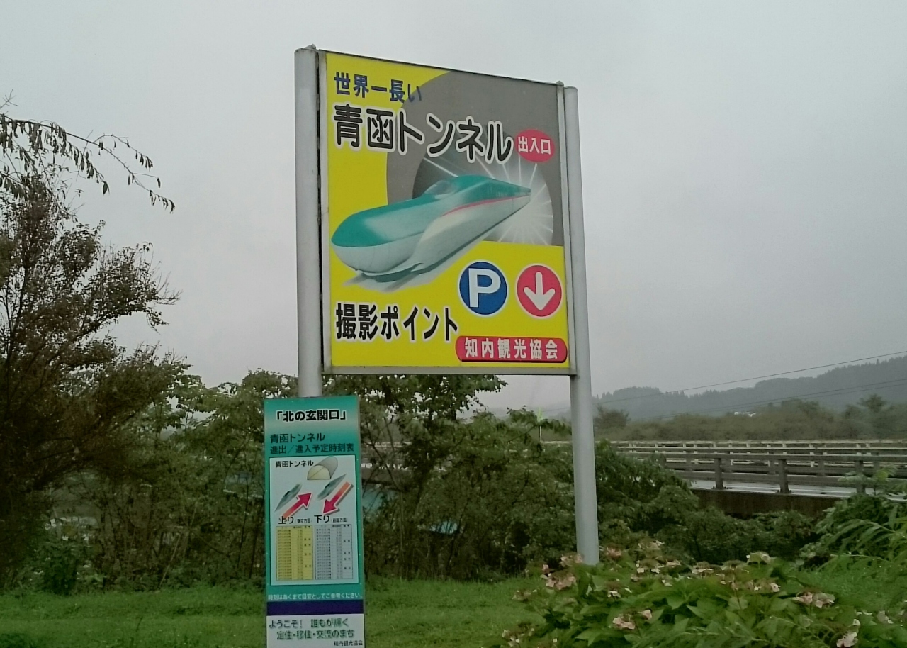 知内町にある小さな撮影台ですが、国道から近く、トンネルに入る前とトンネルから出てきた新幹線を見ることができる絶景ポイントです。