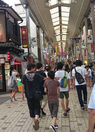 大須観音の東側に広がる昔ながらの商店街です。夏休みと言うこともあり、若者で賑わっていましたが、各世代が楽しめるほどに、多種多様の店舗が軒を連ねていました。アーケードがあり暑い日差しを遮ってくれるのも助かりました。