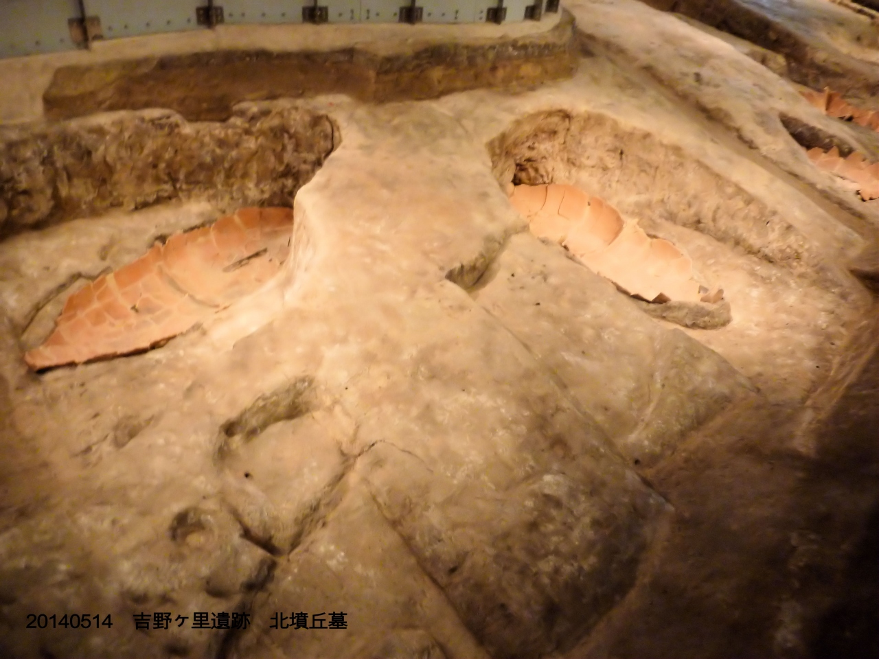 北内廓の先に、歴代の王を埋葬したと考えられている墳丘墓の跡が専用の建物内に保存されていて、内部を見学することができます。甕棺墓や副葬品はあ公園入口近くの展示室に展示されていますので、まずはそこを見てから墳丘墓を見学するとより理解が含まると思います。