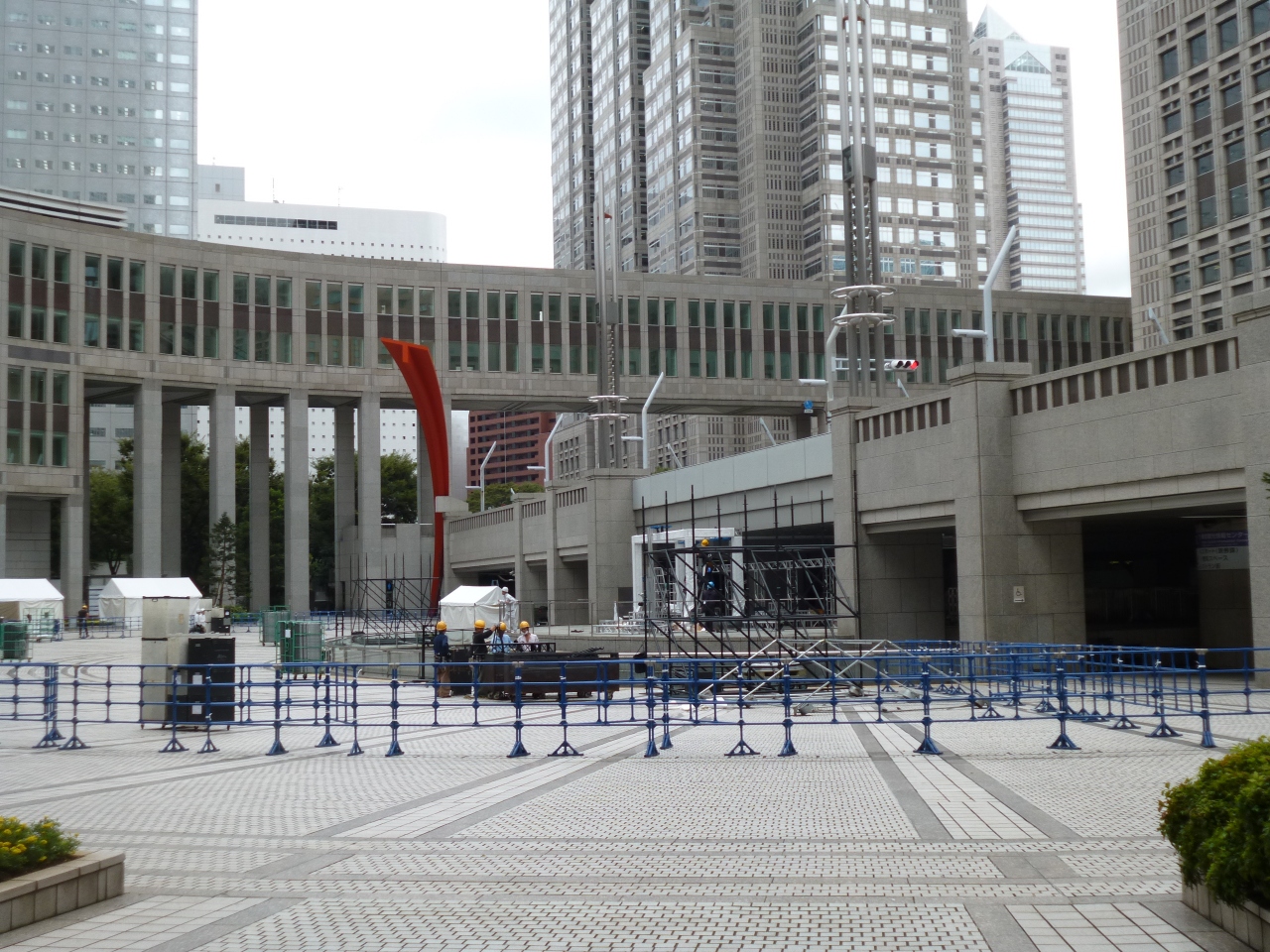 東京都庁を訪れると、庁舎前の広場にはイベントの準備が行われている最中でした。パラリンピックから帰国する都知事が出席しての五輪関連イベントと思われます。