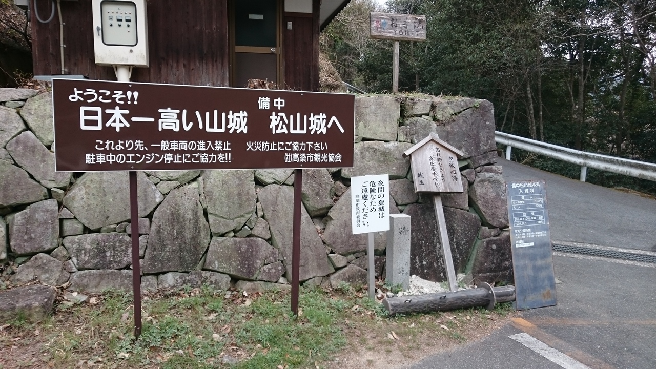 現存12天守巡り10城目。備中松山城です。3合目あたりに駐車場があり、そこから乗り合いバスに乗ります。8合目あたりまで15分程で到着。そこからは歩きです。3月末でしたが、登り坂で暑い。山道は道も悪くそこそこ険しいです。ちゃんとした靴でないと無理。20分ほど苦しんで登山すると石垣が見え始めます。天守入場は大人300円。こんな山頂に結構立派な石垣が組まれています。天守内部はさっぱりとしたもの。場所といい登山といいなかなか難しいお城でした。