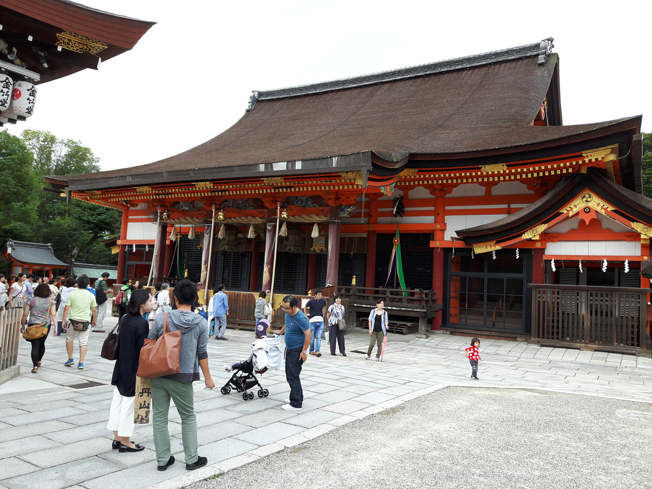 祇園といえば八坂神社。清水寺、高台寺、建仁寺、知恩院と続く東山の観光エリアにあるためか、海外からの観光客もたくさん来ています。着物を着ている人たちも多く、昔はこうだったのかなと感じさせて何だかほほえましい光景です。