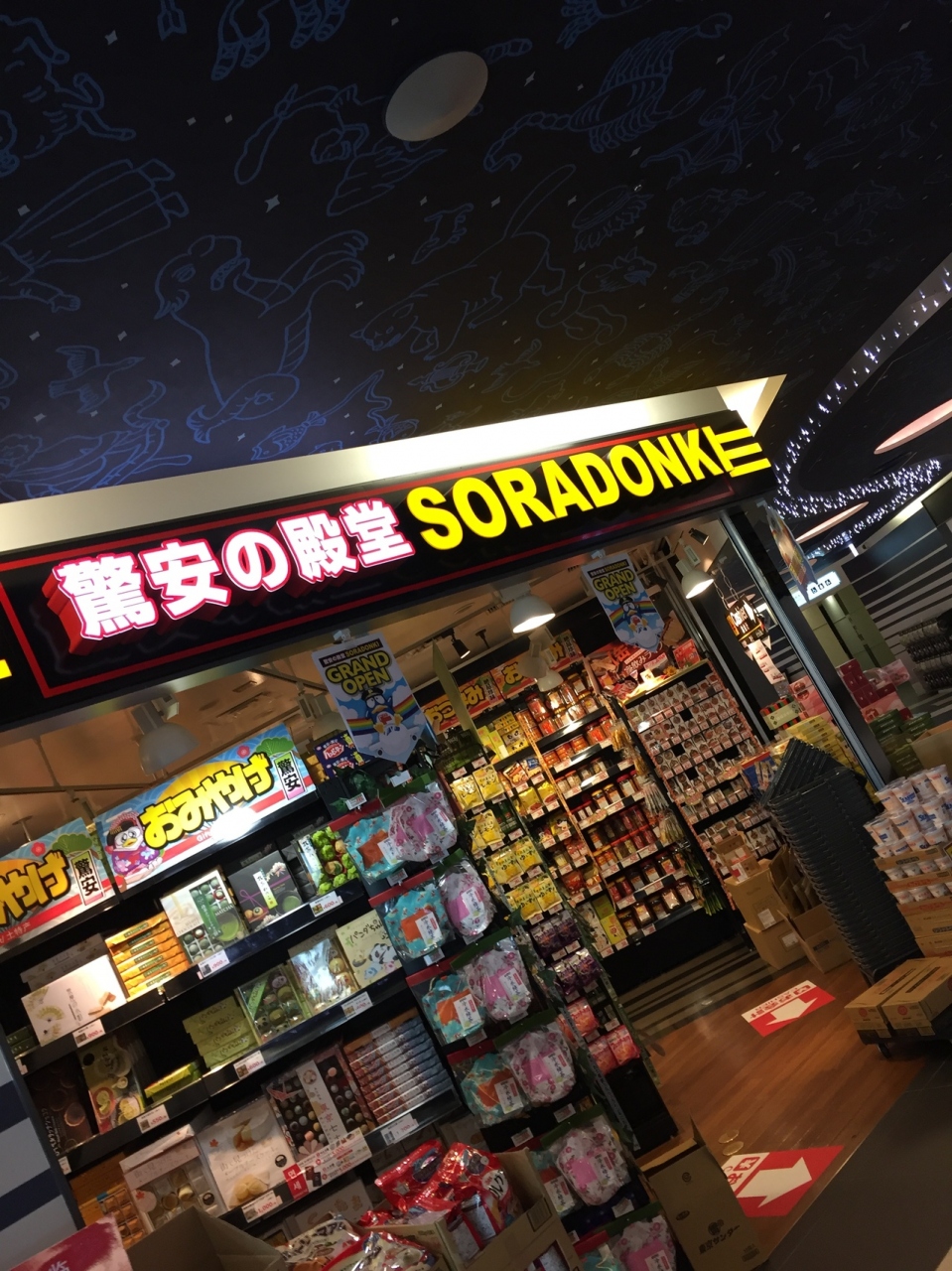 ドンキらしいガチャガチャした商品配置は変わりませんが、狭い店内には空港らしく日本のお土産になりそうな物が販売されています。
