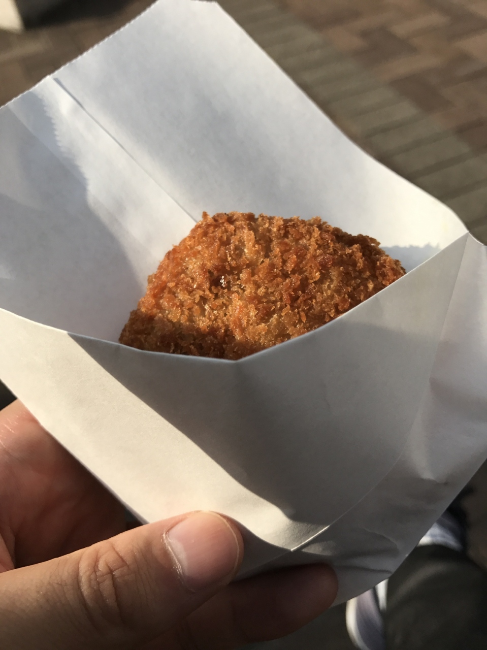 じゃこカツを食べましたが、アツアツカリカリで美味しかったです。食べ歩き用に紙で包んでくれますが、あつすぎて手が火傷しそうです。