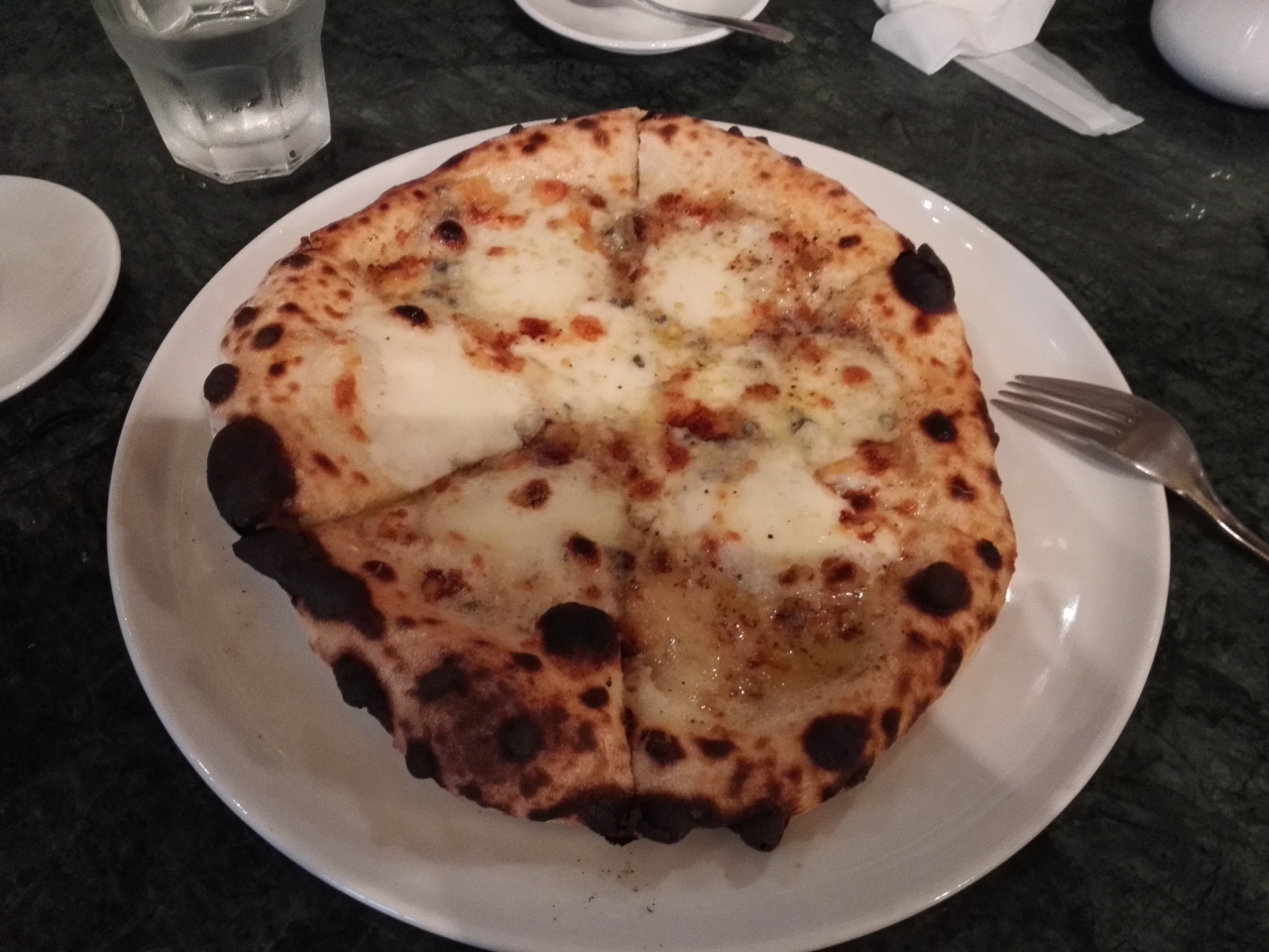 お店の看板商品はマルゲリータ コン ブファラのようでしたが何となく味が想像できてしまったので、ハチミツをトッピングするというクワトロフォルマッジを注文しました。