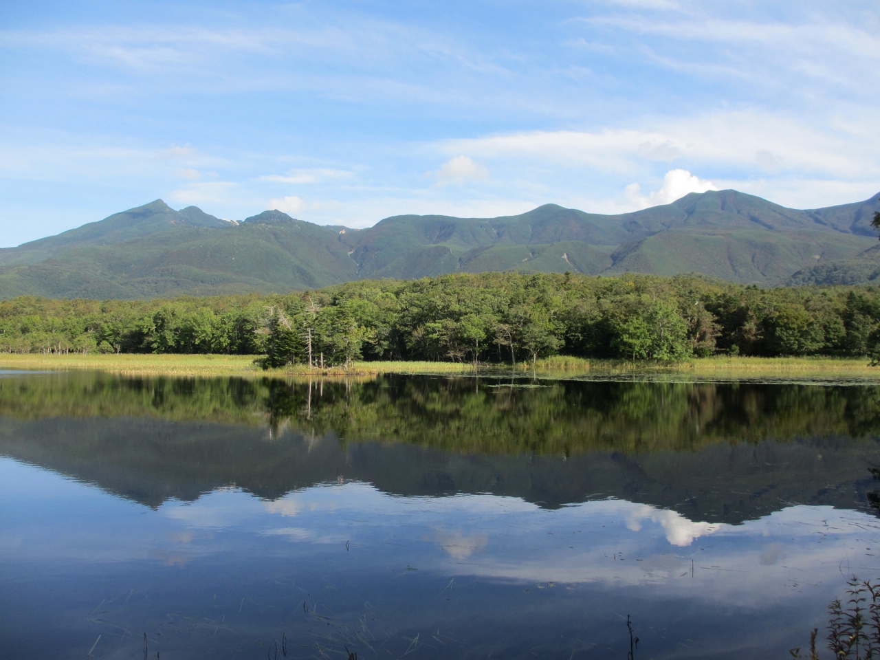 知床五湖の中で最も大きな湖です。晴れた風がない日には、湖面に映る知床連山が大変に美しい湖でもあります。出発地点のフィールドハウスからは、地上遊歩道を利用して二湖と一湖を巡る40分ほどのコースと、五湖全部を巡る1時間半ほどのコースがあり、両コースとも二湖を観賞することができます。五つの湖にはそれぞれ特徴がありますが、二湖は知床五湖を代表する美しい湖だと思います。訪れた日は連山に雲もなく、最高の眺めを堪能することができました。