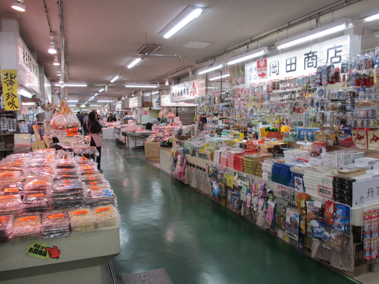 北海道三大市場の一つ、和商市場に人気の勝手丼を食べに行ってきました。市場内を巡り、食べたい食材を決めたら、まずご飯を丼に適量盛ってもらいます。その後、各店舗を巡り食べたい食材をのせていきます。最後に醤油をかけてもらい完成です。好きな食材を好きなだけ食べられますが、価格はやや高めに設定されているようなので気を付ける必要があります。どなたかがコメントされていた、強引に販売する姿は見られませんでした。HPなどに割引クーポンがあるので前もって印刷していくといいでしょう。勝手丼以外にも東京ではなかなか手に入らない肉厚のほっけや新鮮な魚介類も販売されています。ウニやほっけを買ってきましたが、どれも美味しいと感じられるものばかりでした。やや値が張りましたが、美味しいものに出会えて幸せな気持ちになりました。