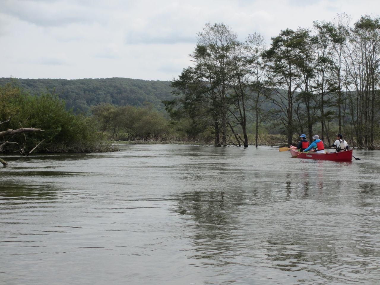 釧路湿原の中を蛇行して流れている川です。細岡展望台から見ると蛇行している様子がよくわかります。3週間ほど前には台風10号の影響ではん濫注意の川になり、水深が2mほど増してしまいました。そんな中を川に沿ってカヌーで巡ってきました。水かさが増したため、川岸は見えなくなっていましたが、湿原が水を吸ってくれたためはん濫せずにすんだそうです。カヌーから見た川は穏やかに流れていました。6000年かけて形成された自然の力強さを感じました。川辺では湿原の住人?オジロワシやアオサギ、カモなども見ることができました。