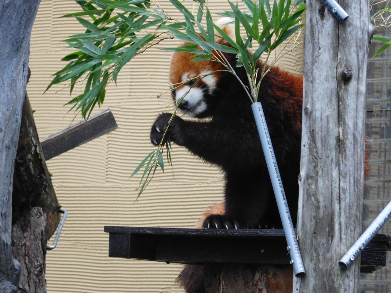 旭山動物園の中程にあり、屋根のついたレッサーパンダ舎と、そこから、道路を渡るようにして吊り橋が架かっています。レッサーパンダはちょうどお食事中で、美味しそうに食べている姿を見る事が出来ました。頭上に吊り橋が架かっているのを見て、この橋の上をトコトコと歩いている姿が見れたら、面白いだろうな~と思いました。残念ながら、橋を歩いている姿を見る事は出来ませんでしたが、いろいろな工夫をしているな~と感心しました。