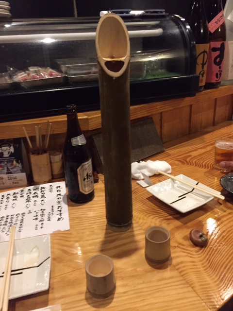 日本酒は竹の筒に入ってくるタイプがあり、面白みがありました。