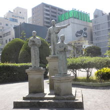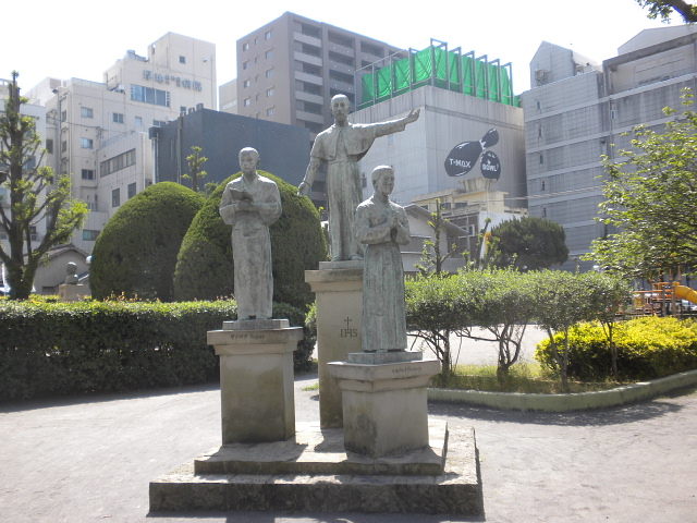 石像は、ザビエルの胸像とザビエルを含んだ三体の立像があります。そして道を挟んだ向かいには教会があります。