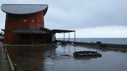 珠洲市の仁江海岸で受け継がれてきた、日本で唯一の「揚げ浜式」の塩づくりをテーマにした道の駅です。塩の資料館(入場料100円)では世界の塩が紹介されていて、昔訪れたことのあるペルー・アンデスのマラスの塩田の塩も展示されていました。「揚げ浜式」塩づくりのエリヤは雨のためか、休業状態でした。