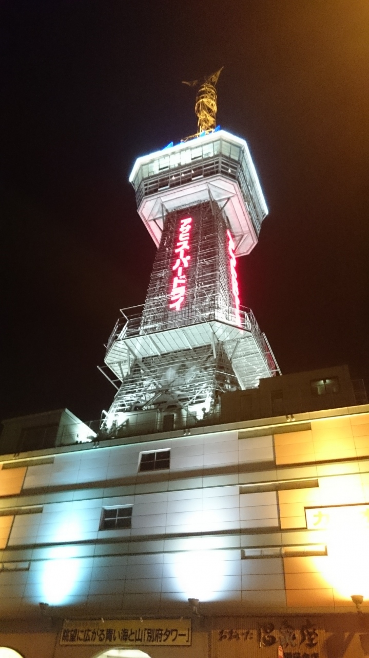 夜景はそこそこきれいです。遠くに日出杵築方面、大分放免がキラキラと見え、別府の町中もよく見えます✨車の流れとか