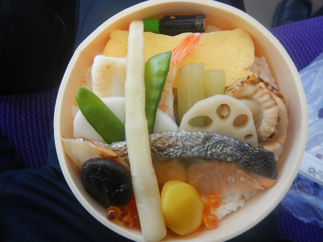 盛岡駅で駅弁を買う。座席はロングシートなので車内では食べずらいが、気にせず食べた。