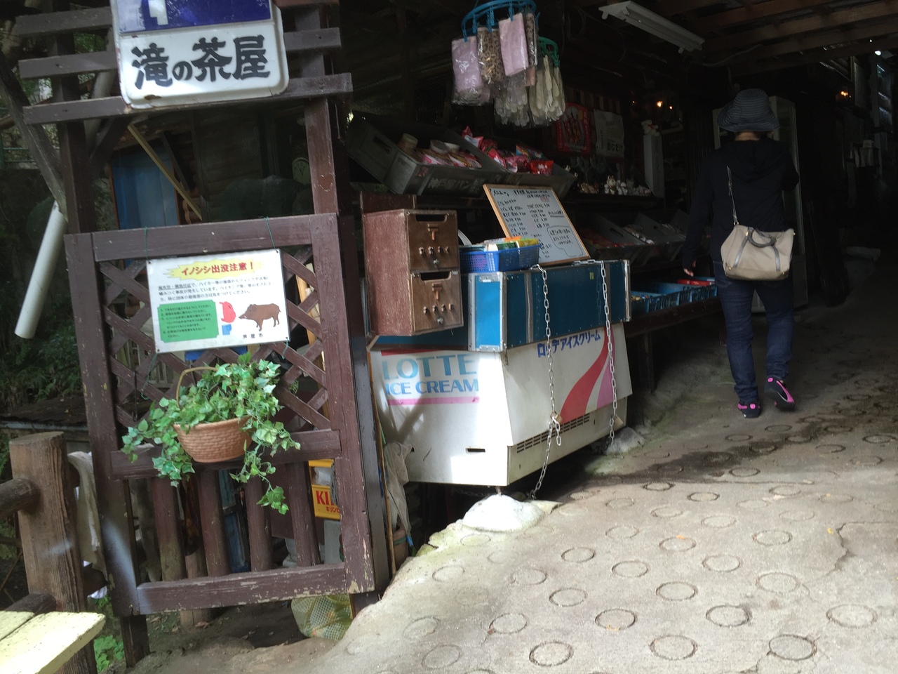 滝を見ながら一服。高座の滝は落差10メートルほどの小さな滝ですが、ここからロックガーデンへ登る起点となること、また最寄り駅から約2キロの地点であることから、登山者のちょうど良い休憩場所になっている。茶屋の名物はおでん120円から。ビールを頂きたいところですが、それは下山後のお楽しみです。