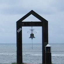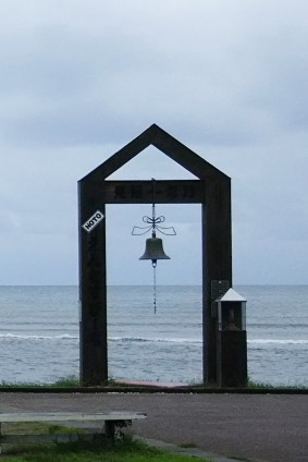 少し南の恋路海岸とダブルで客寄せしよう!が観光開発のコンセプトなのか、ここ見附海岸は縁結ビーチなのだそうです。幸せの鐘?とかいうのが、さも取って付けた様に設置されています。ここはバカバカしさに乗って、鳴らしてみましょう。想像以上に大きな音がしてビックリ。あぁ、恥ずかしい!