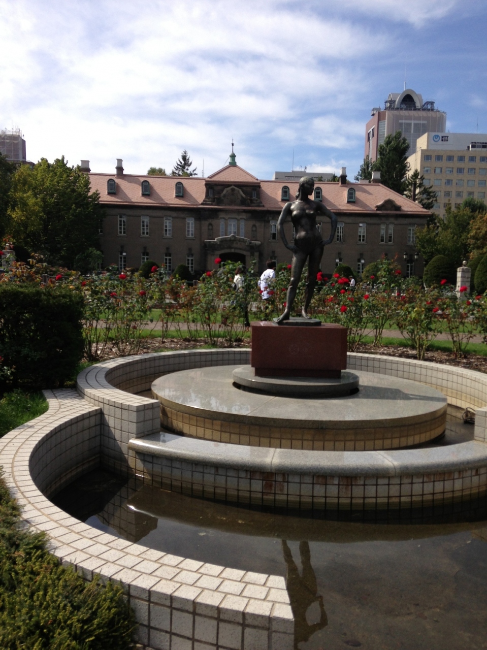 札幌大通り公園敷地内を散策していると、若い女の像があります、ジーンズを身につけており、1984年に東洋南アジアライオンズフォーラム札幌が開催されたことを記念して同組の組織委員会がたてたとされます。とても面白い像です。