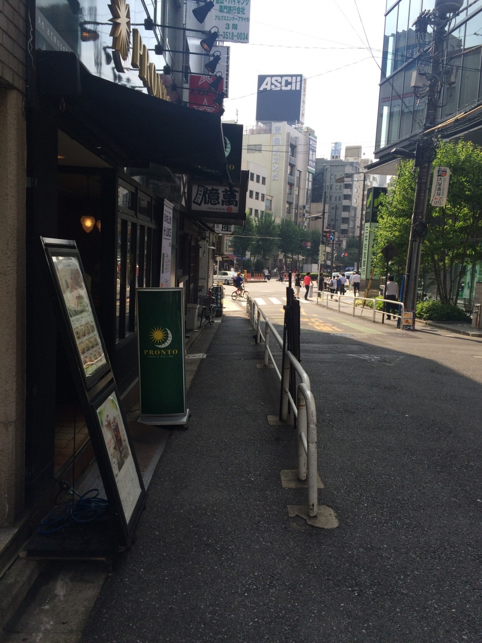 100メートルぐらいの緩やかな坂で道の左右には食事処等、店が連なっているので坂と言う感じがしませんでした。千代田区には同じ名前の坂が三つあるそうです。車一台通るのがやっとで左右にはガードレールがありますが人通りが多いので狭く感じる道幅です。