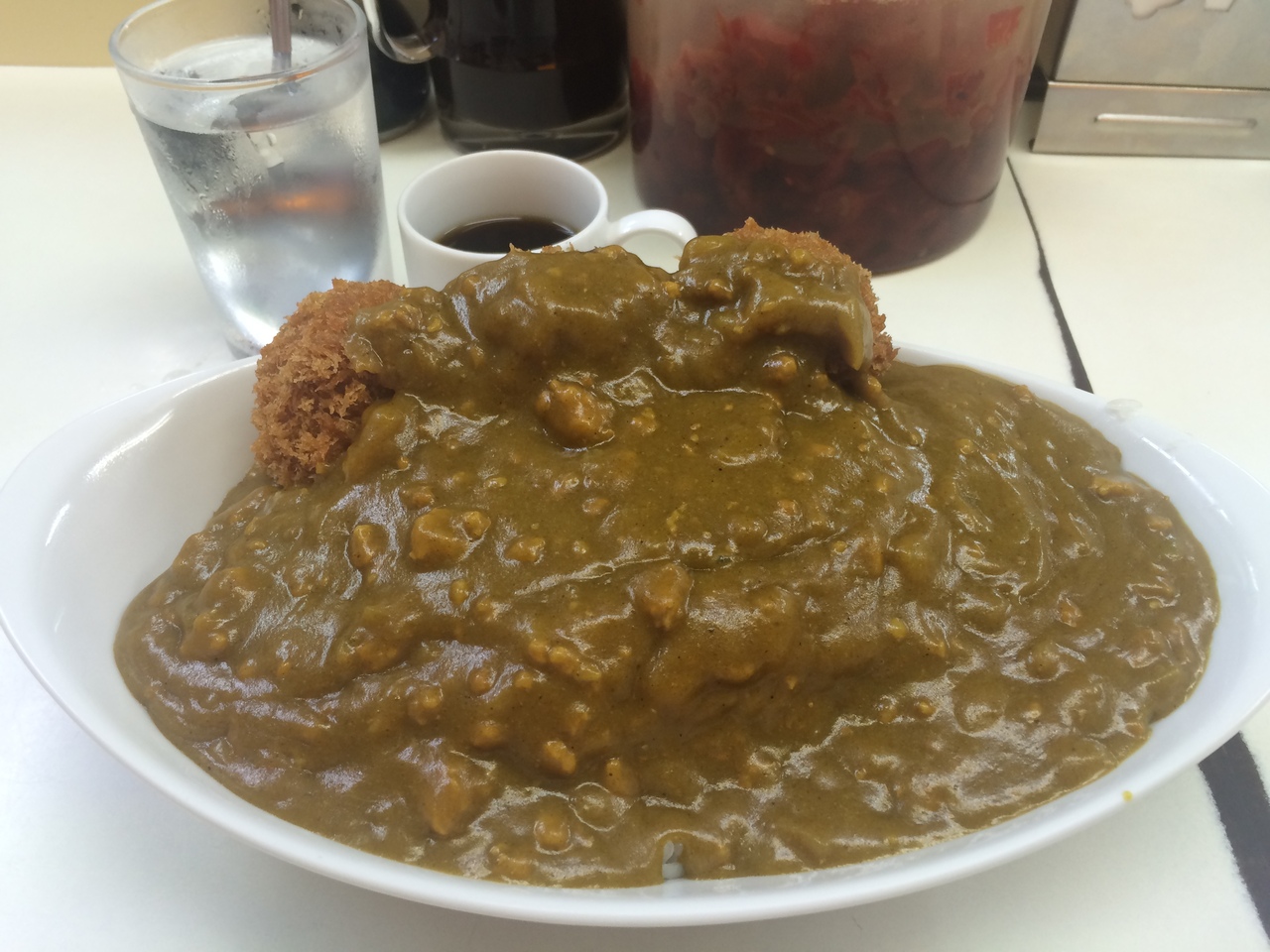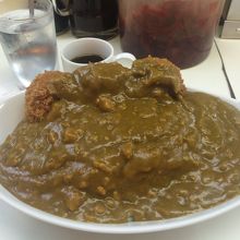 店内は10数名座れるコの字型で狭い店内です。注文すると水、スープン、デミカップに入ったアイスコーヒーが出てきます。カツ、しゅうまい、ウィンナー等トッピングがありどれも出来立てで提供されるので熱々で食べることが出来、カレーの量もボリュームがあります。カレーはドロドロしたルーで挽肉が結構入っていて美味いです。