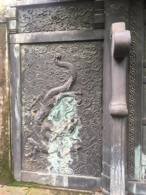 この鋳抜門は、鋳抜門は、六代将軍徳川家宣公の霊廟の宝塔前にあった中門だったものです。今は、増上寺の中の徳川将軍家の墓所を守っています。この墓所は、増上寺の右奥にあり、ひっそりと静まり返った場所にあります。