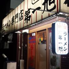 京都駅から東北方向に徒歩5分程。少し離れた所にあります。新福菜館というラーメン屋さんと2軒隣りあわせにあるということで有名です。