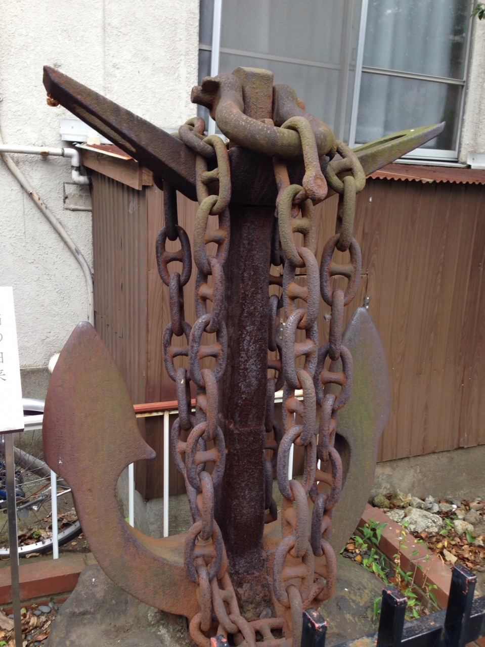日露戦争で活躍した日本海軍の錨だそうです。船は63.5メートルの長さ、錨も高さ1メートル位はありそうで重たそう。船の大きさを感じる力強さです。