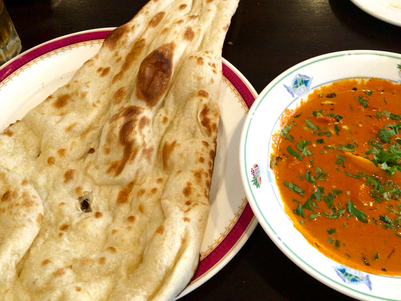 ビリヤニのボリュームが多そうだったので、バターチキンカレーを注文しましたら、巨大なナンが付いてきました。