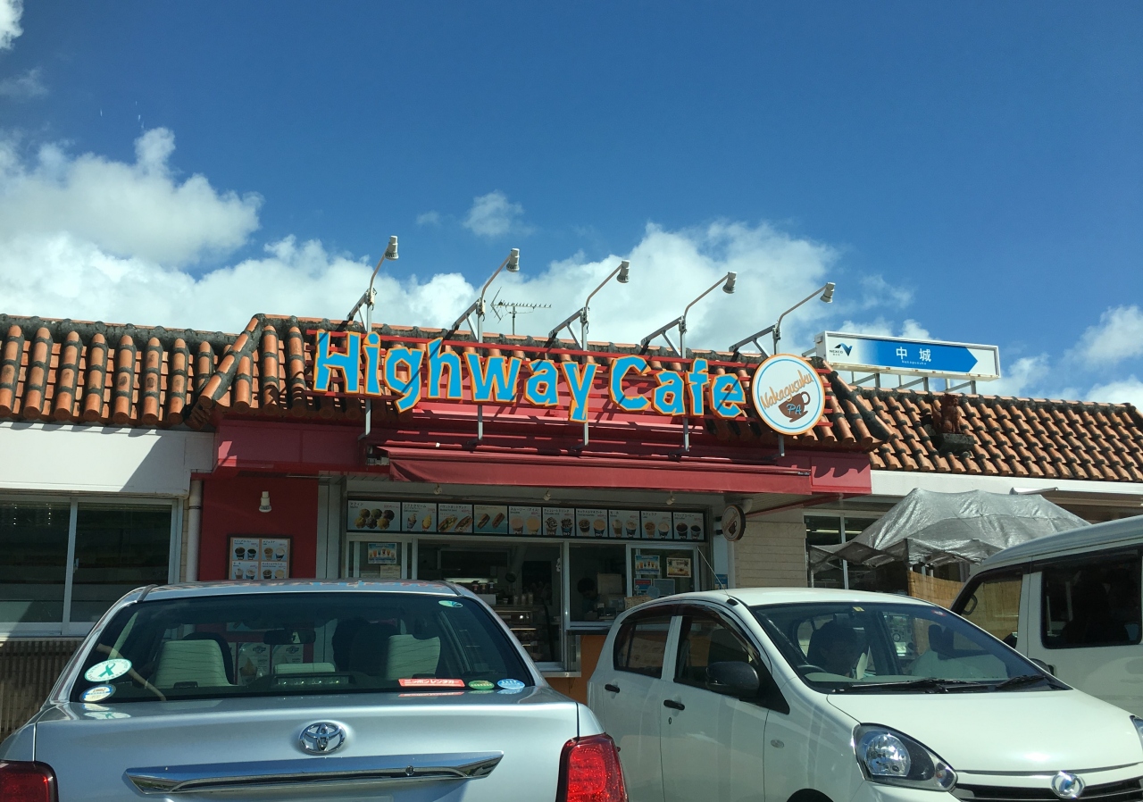 沖縄自動車道のパーキングエリアです。フードコートやお土産ショップの他に、ハイウェイカフェがありコーヒーやスムージー、ソフトクリームなどを販売していました。建物の中には那覇空港の発着掲示板もありました。空港へ向かう前にリアルタイムの状況がわかるので助かります。