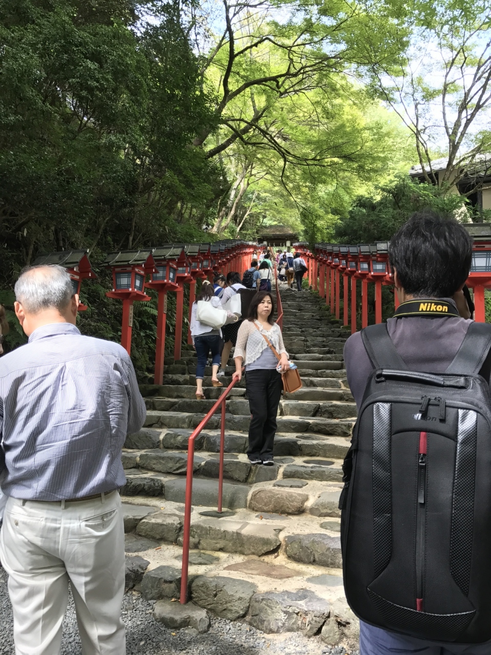 京都の貴船にある神社です。田舎にあるわりに観光客で賑わっています。交通手段は京阪出町柳から叡山電鉄に乗って歩くか、バスか、車ですが、駐車場は少なく、道が細いのに歩行者が多いので通りにくいです。叡山電鉄の駅から歩くのは少し距離があります。バスもけっこう混んでいます。自然がそのまま残っているので、朱い灯篭と苔むした石の階段は見上げると圧巻です。ここの水みくじは有名で、ご神水とされる水におみくじをつけると文字が浮かび上がります。一回200円でした。湧き水もお賽銭を入れて持ち帰っている人もいました。珍しい水みくじに子どもは大喜びでした。