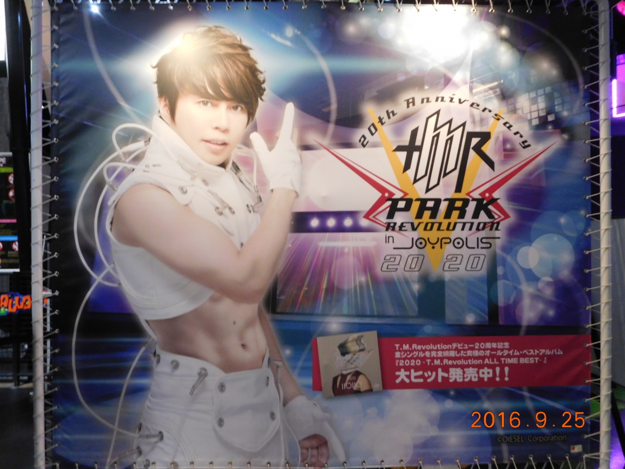 色々とイベントをやることも多いジョイポリスですが、私が行った時は「TMRevolution」さんとコラボイベント中で、デジタルSFライブを行っていたり、カフェのメニューも、西川さんの曲をイメージしたものになっていたり、マスコットキャラのタボくんが来てくれていたり、TMR一色で、大人も子どもも大興奮でした。