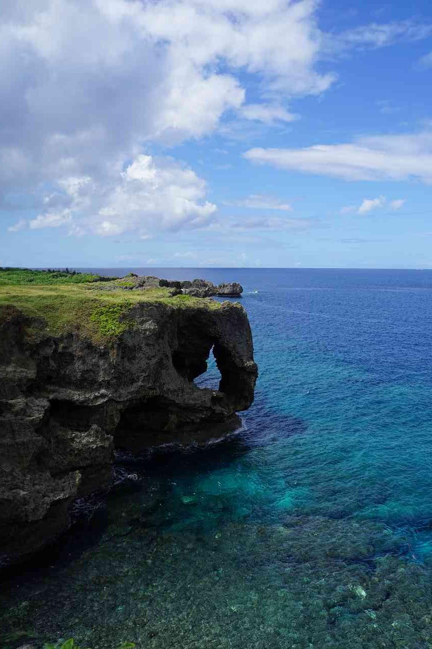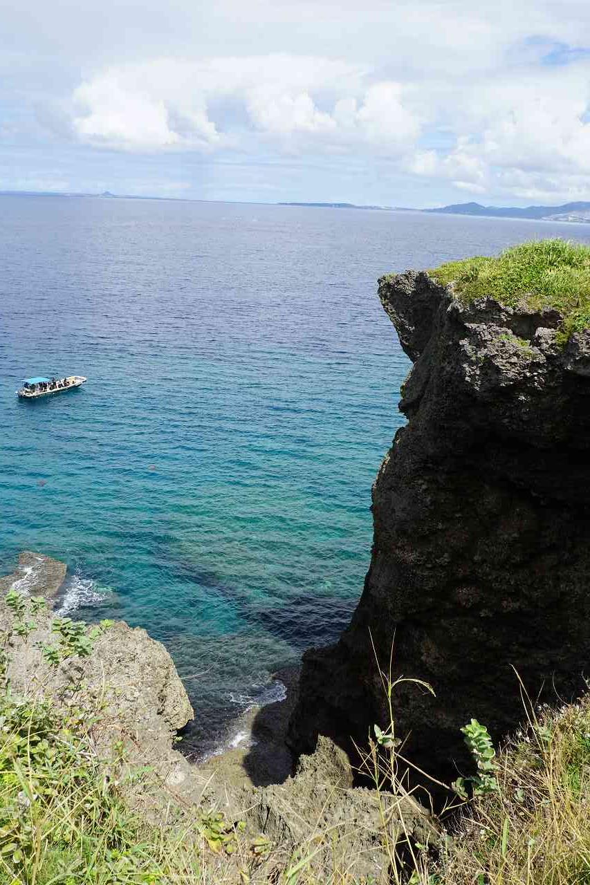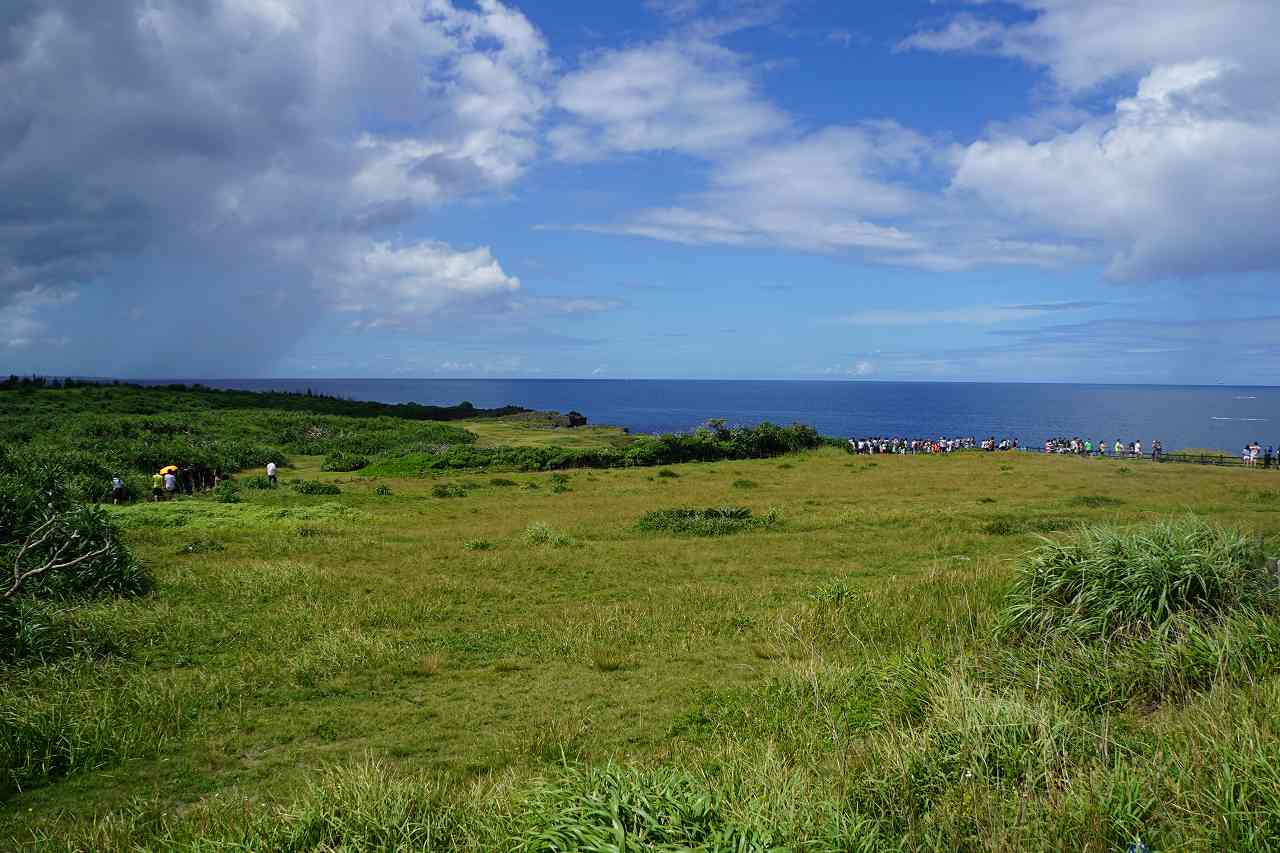33年前万座毛に来た記憶があったのですが、再訪してみると実際は万座ビーチに来てボートに乗ったり泳いだだけだったと思い出されました。過去に2回地中海に浮かぶマルタ共和国に行っているのですが、この辺りの海岸線の風景に似ているなと思ったことがありました。そして再び万座毛に来てみるとマルタのブルー・グロットやあアズール・ウインドウに似ているなと思いました。この辺りの海岸線を海から見ることのできる遊覧船があれば良いのにと思います。ダイビングのポイントのようで、眼下のボートの人たちが羨ましく思えました。バスのガイドさんに「万座毛」の名前の由来を教えてもらい勉強になりました。海岸線ばかりに目が行きますが、肝心なのはこのフラットな草地だったのですね。
