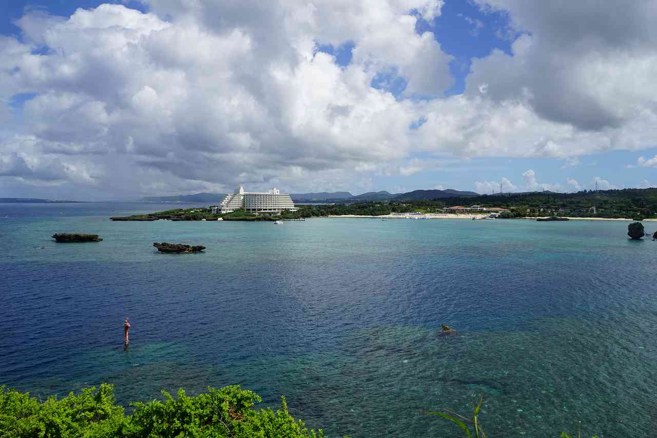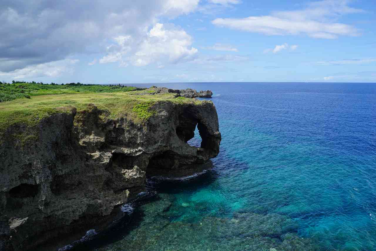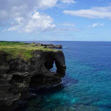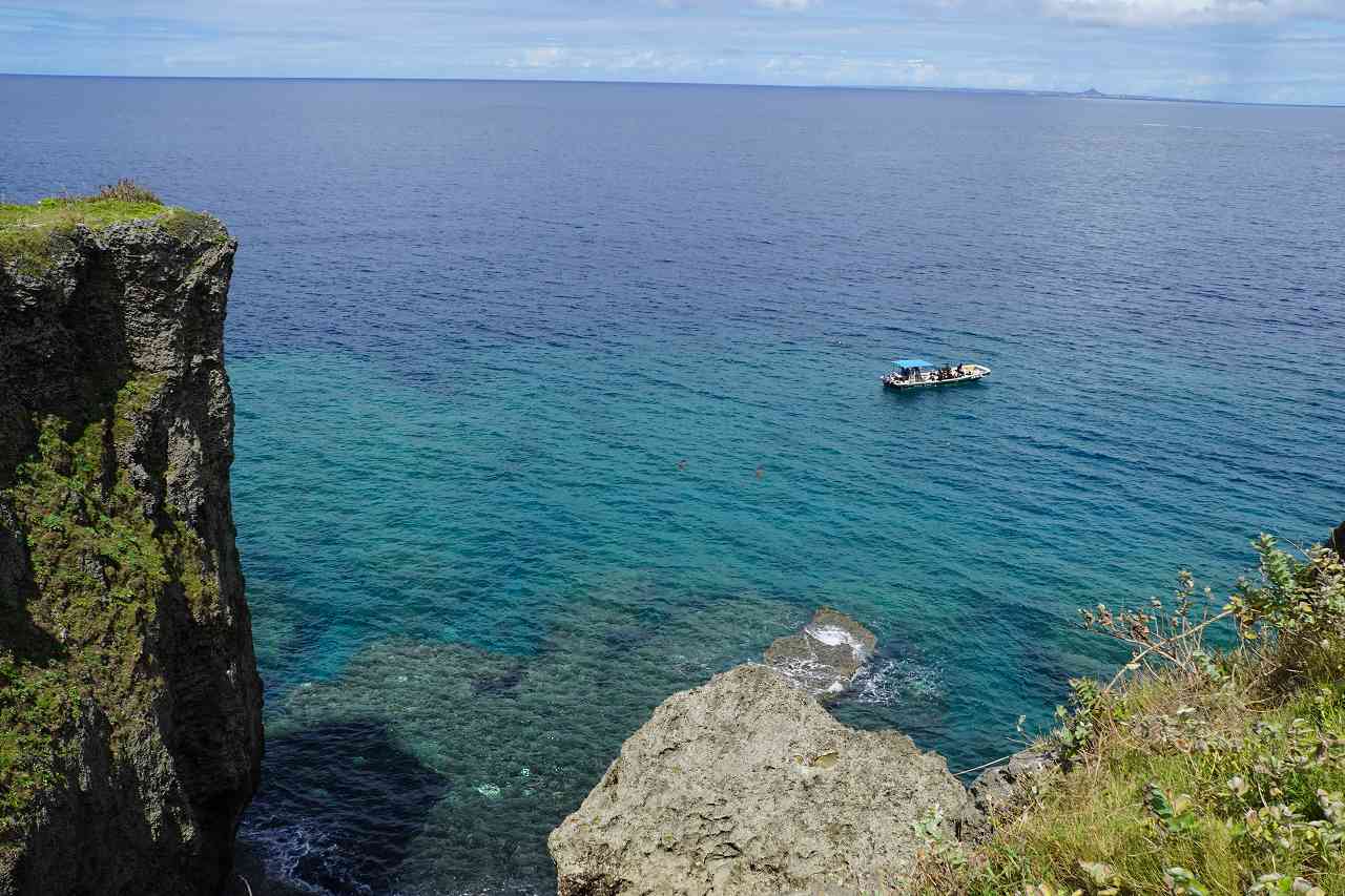 33年前万座毛に来た記憶があったのですが、再訪してみると実際は万座ビーチに来てボートに乗ったり泳いだだけだったと思い出されました。過去に2回地中海に浮かぶマルタ共和国に行っているのですが、この辺りの海岸線の風景に似ているなと思ったことがありました。そして再び万座毛に来てみるとマルタのブルー・グロットやあアズール・ウインドウに似ているなと思いました。この辺りの海岸線を海から見ることのできる遊覧船があれば良いのにと思います。ダイビングのポイントのようで、眼下のボートの人たちが羨ましく思えました。バスのガイドさんに「万座毛」の名前の由来を教えてもらい勉強になりました。海岸線ばかりに目が行きますが、肝心なのはこのフラットな草地だったのですね。
