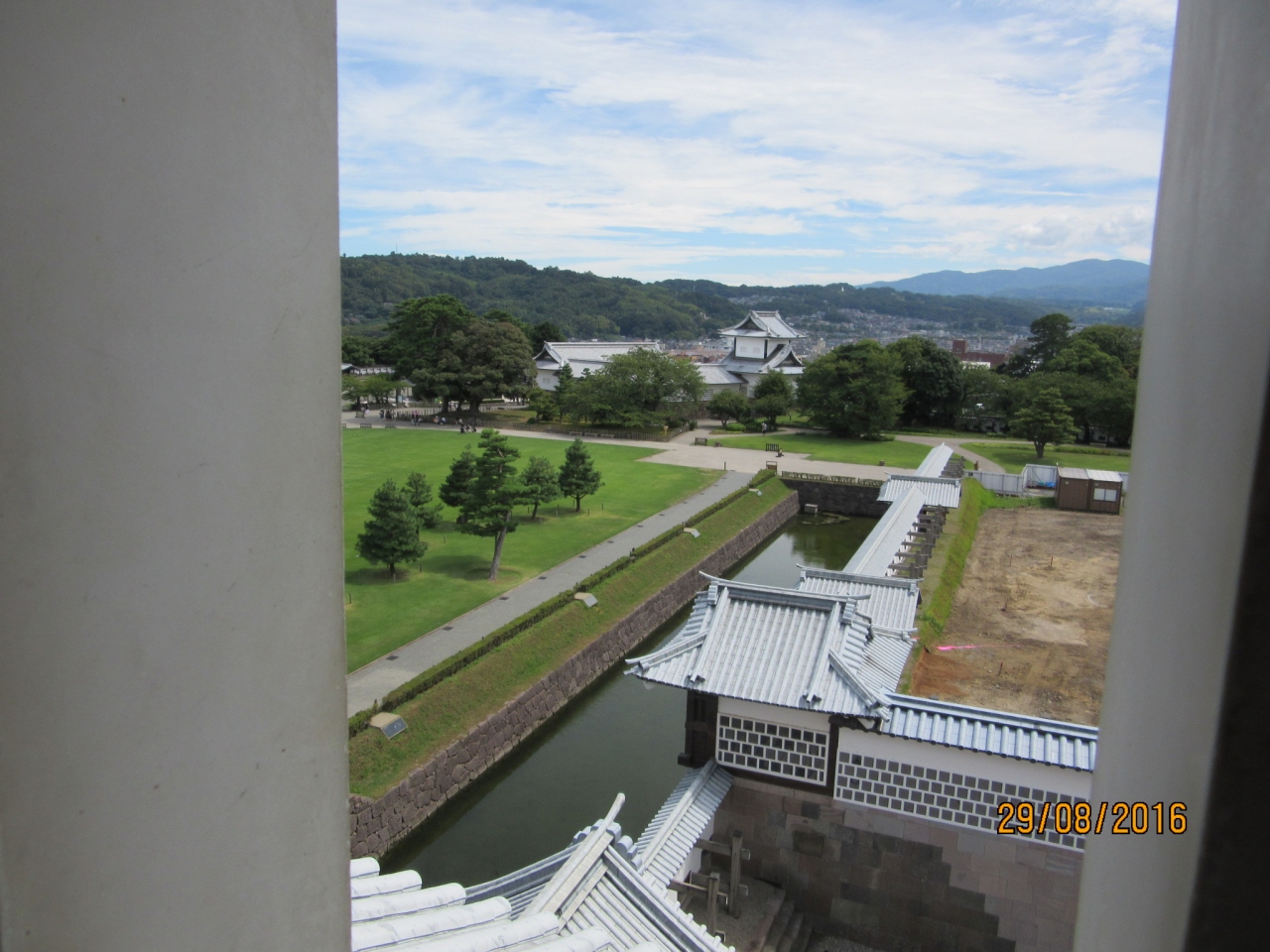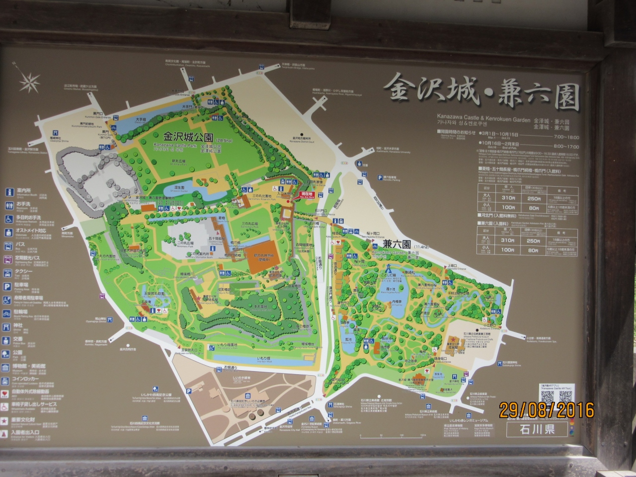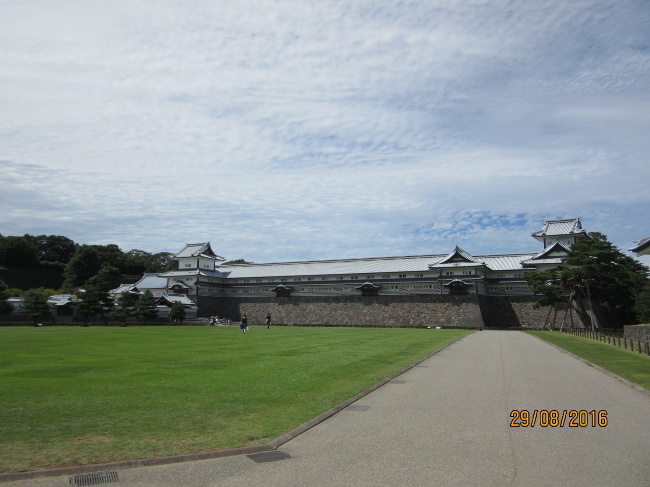 尾山神社の裏口に出ていもり坂口から【玉泉丸庭園】を経て、二の丸広場⇒五十間長屋⇒橋爪門⇒三の丸広場⇒石川門と見学しました。菱櫓や五十間長屋を見学せず公園だけなら無料で楽しめます。敷地が広大で見どころ多数、天守こそないがさすがに加賀百万石の城と感心しました。