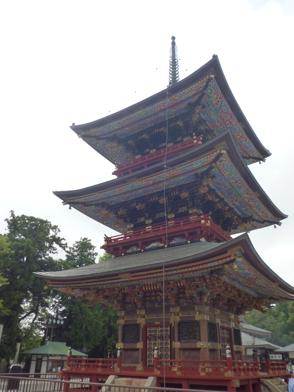 仁王門をくぐって、大本堂の手前、右側にありました。朱色があざやかな三重塔でした。塔内には、大日如来様が祀られているそうです。周囲には、十六羅漢の彫刻があり、装飾が豊かでした。外国からの観光客も、興味深く熱心に写真を撮っていました。
