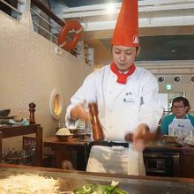 - たくさんの鉄板が並び、スタッフがキビキビ働いていて気持ち良い。