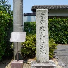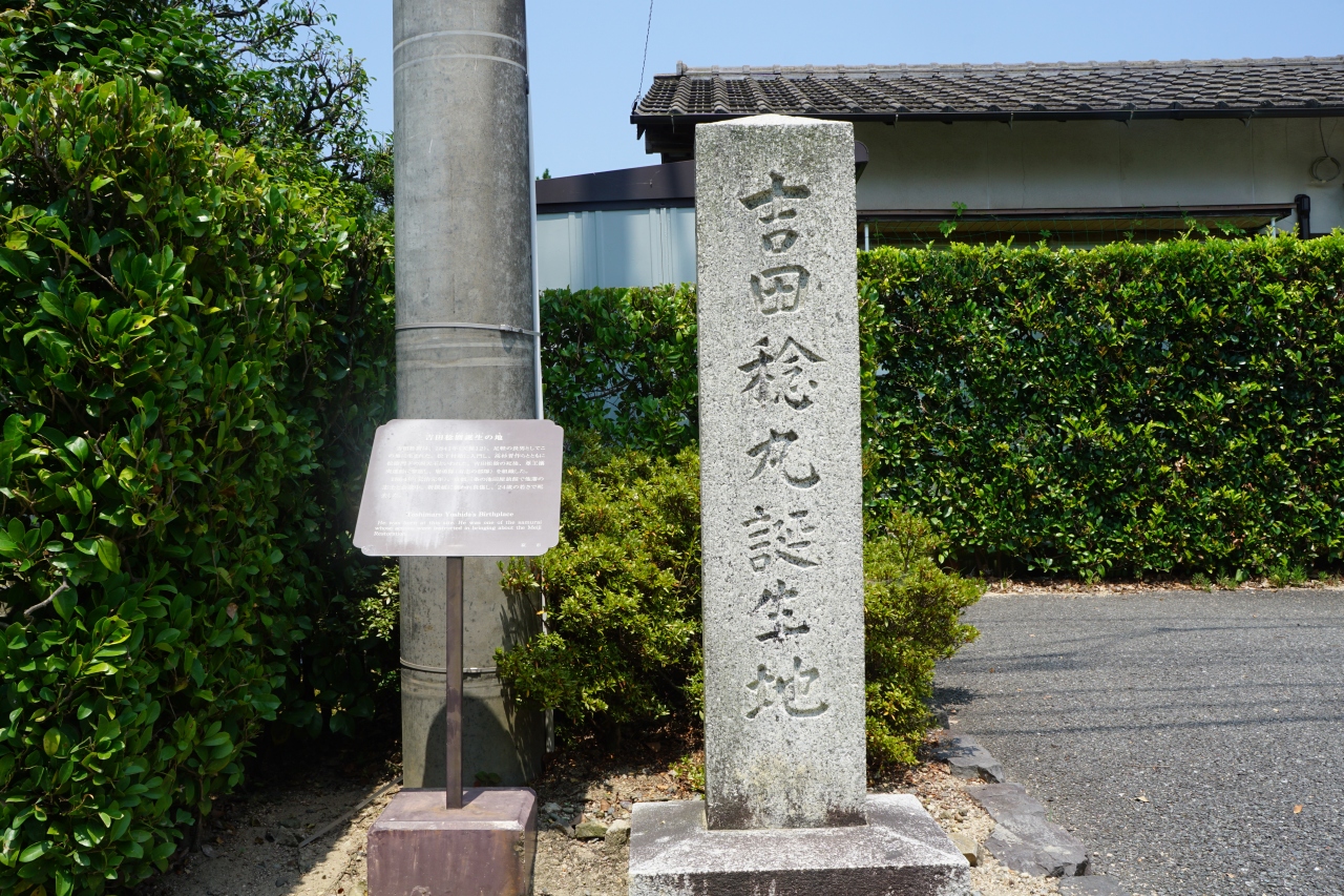 吉田稔麿誕生地は、伊藤博文旧宅から松陰神社に向かう途中。吉田もご近所さんの一人ですが、今は道端に説明板と石柱だけがある簡素なスポットです。