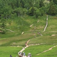 歩きやすいように木道もあり道がとても整備されていて初心者のハイキングにピッタリです。すずらん群生がありましたが日本すずらんなのでとても品が良く少し地味な印象でした。山頂も眺めが素晴らしかったです。ゴンドラからMTBを楽しむ人達を見れました。