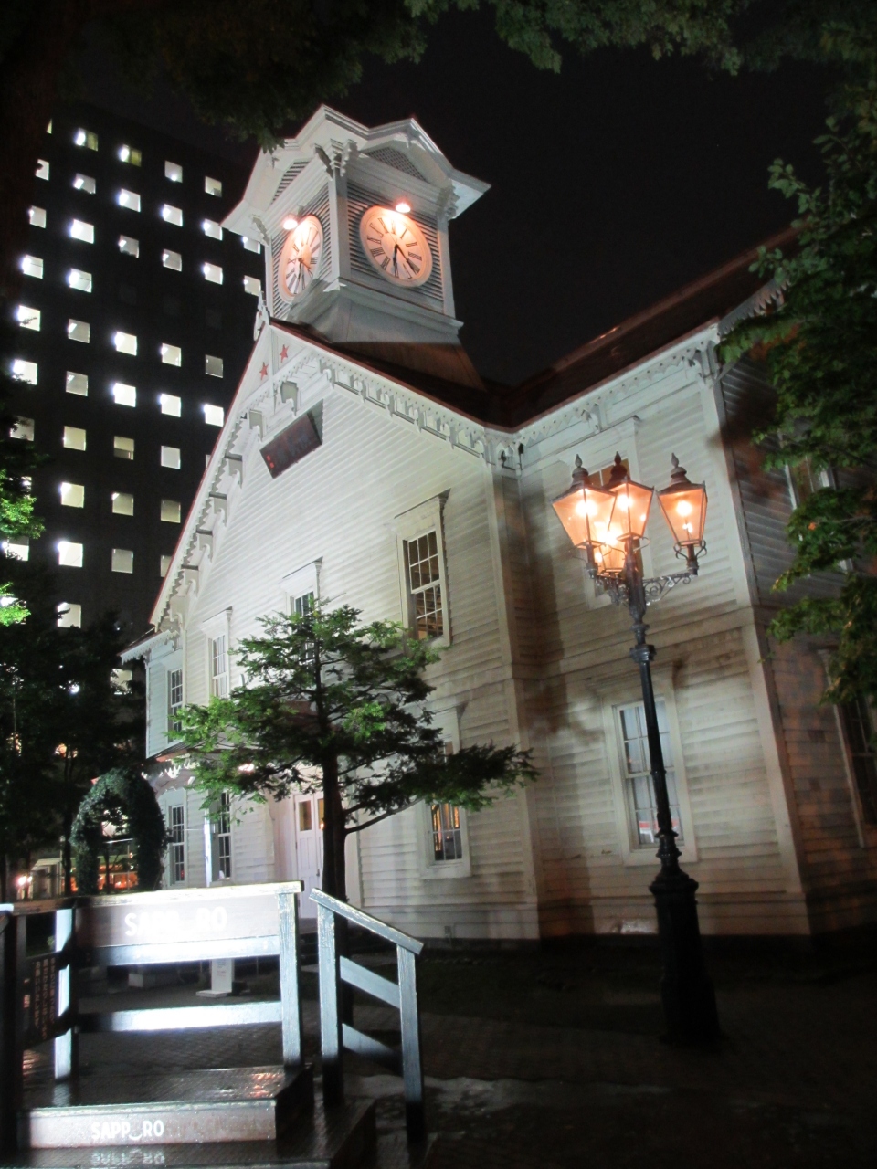 札幌を象徴する観光名所の一つ、130年以上の間、時を刻み続けている時計台です。札幌を訪れるたびに昼間見ていた時計台ですが、今回初めてライトアップされた時計台を見てきました。昼と違い、壁の白さが浮き上がり、幻想的な感じがしました。夜の時計台もお薦めです。