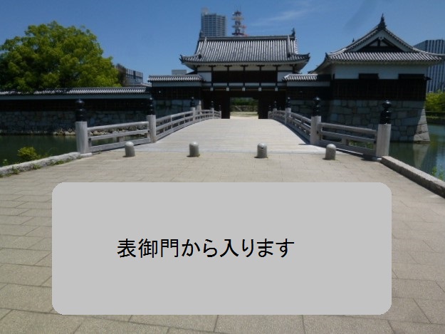 今日は広島に来ています、そして広島城を散策します。毛利輝元によって1589年に築城されましたが、戦争により倒壊しました。その後近年築城400年紀念して1989~92年に二の丸や表御門、そしてここ「御門橋」が整備再建されました。天守閣への行き方として東側から入る方法がありますが、この御門橋を渡り表御門から入って右手に並ぶ櫓群の素晴らしい景観を見られることをお薦めします。ちなみに、ここに並ぶ櫓群の内部を無料観覧できます。是非ご覧なってくださいね。