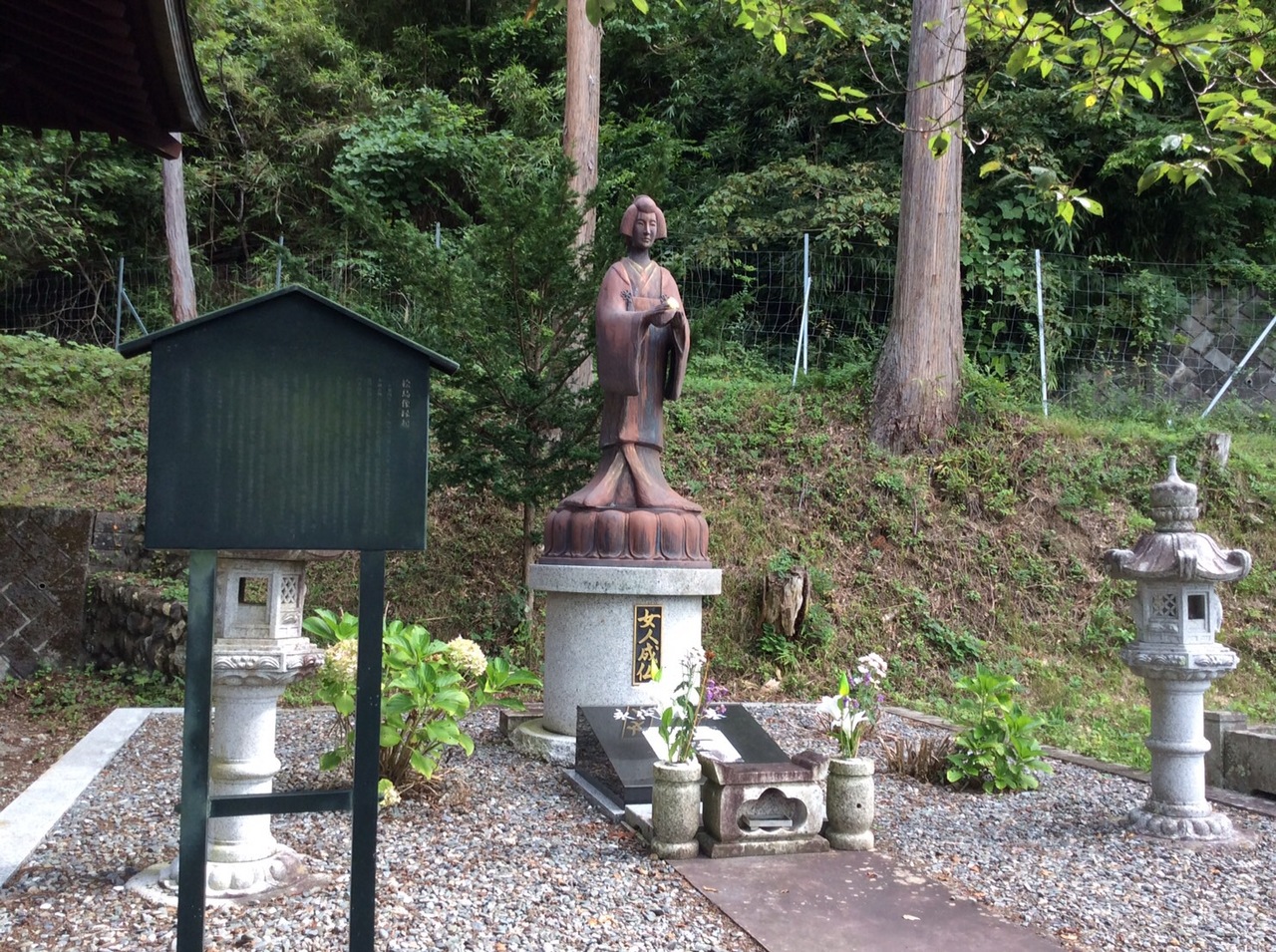蓮華寺の境内の奥にありお墓等を通って行きます。絵島の墓の左手には立派な七面堂が建っています。案内板がところどころにあるので迷わずに着きました。江戸時代の悲劇の人で説明文が書かれています。着物姿の像があるので威厳を感じ感じました。