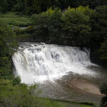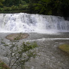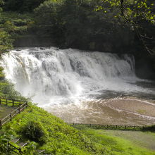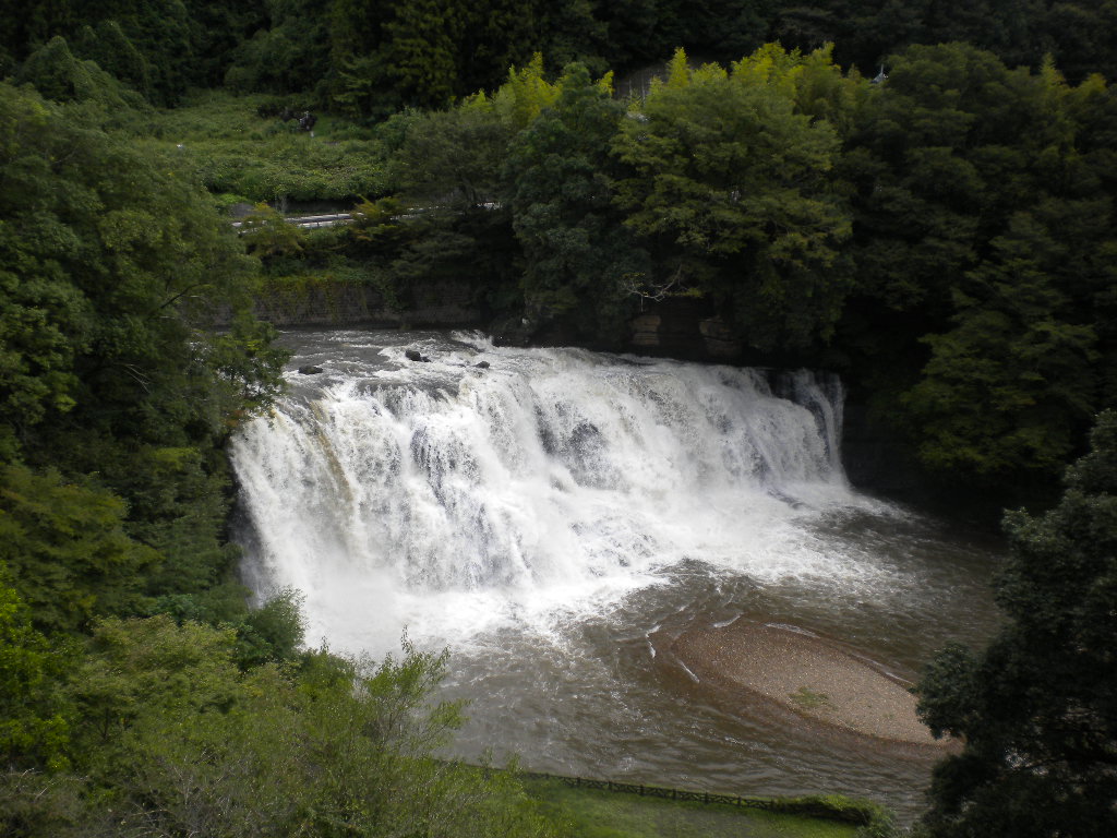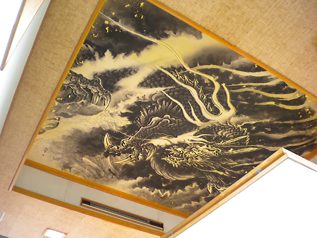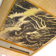 龍門の滝に近く階段を降りるとすぐ龍門の滝です。この日は前日の雨で最高の水量で見応えありました。上には展望室が有ってお天気が悪ければそこから見られます展望室の天井には吉原北宰の龍門の鳴龍が書かれています。館内には龍神洞というのが有り龍神様が喋ってくれますなかなか綺麗でした。