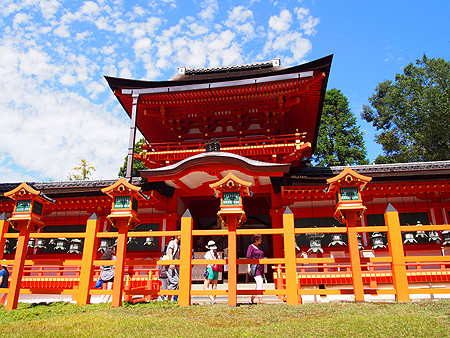 美しい朱色が目立つ本殿内部へは、参拝料を支払う必要が