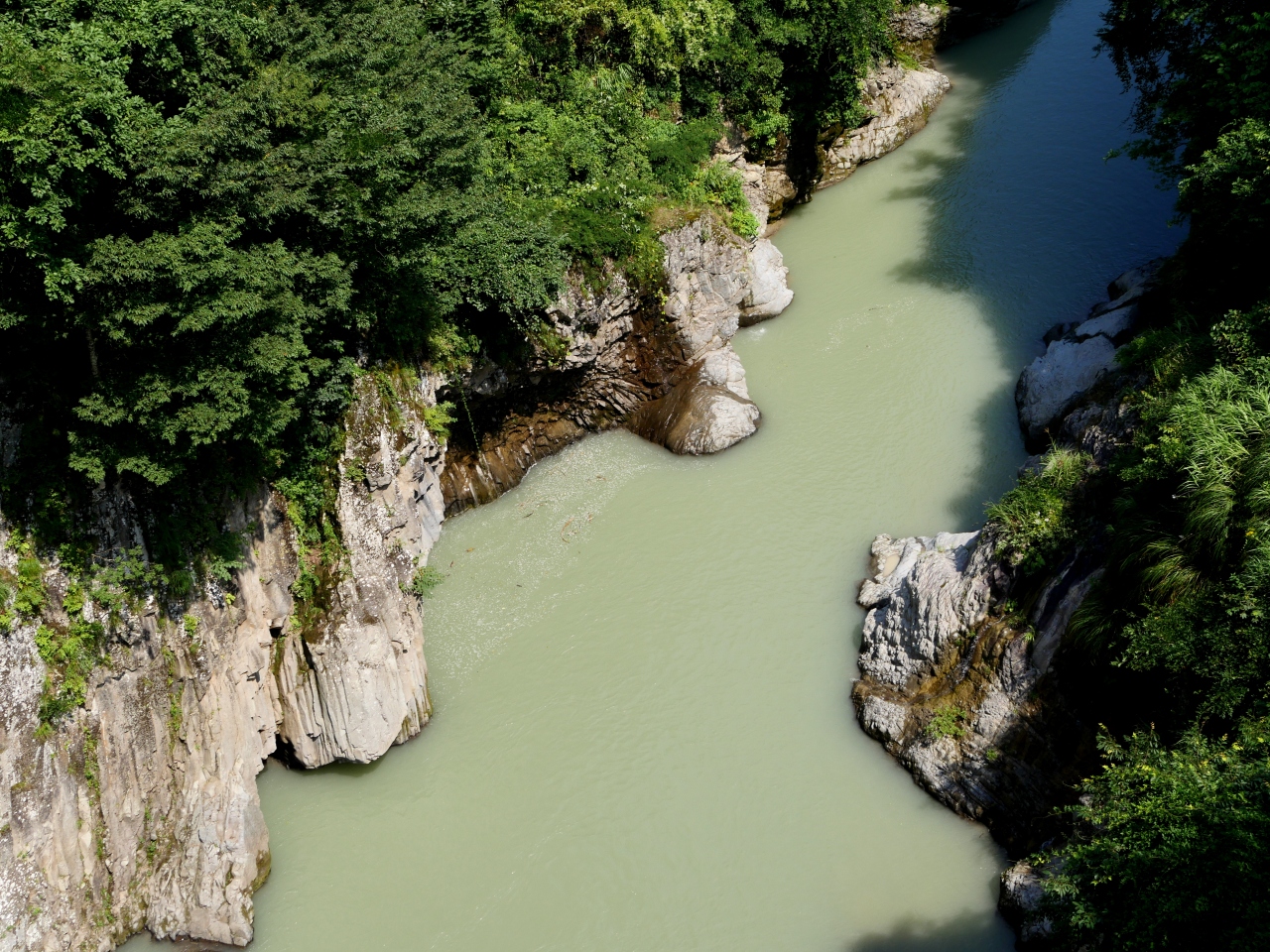 里山が迫る平坦な田園地帯に,渓谷がある.綿ヶ滝も渓谷の滝としては良かったが,滝つぼに降りるのに難.むしろ対山橋や大東橋からの眺めがきれいだった.県道178号線をまっすぐ行った最後の橋と,途中で曲がっていく橋だ